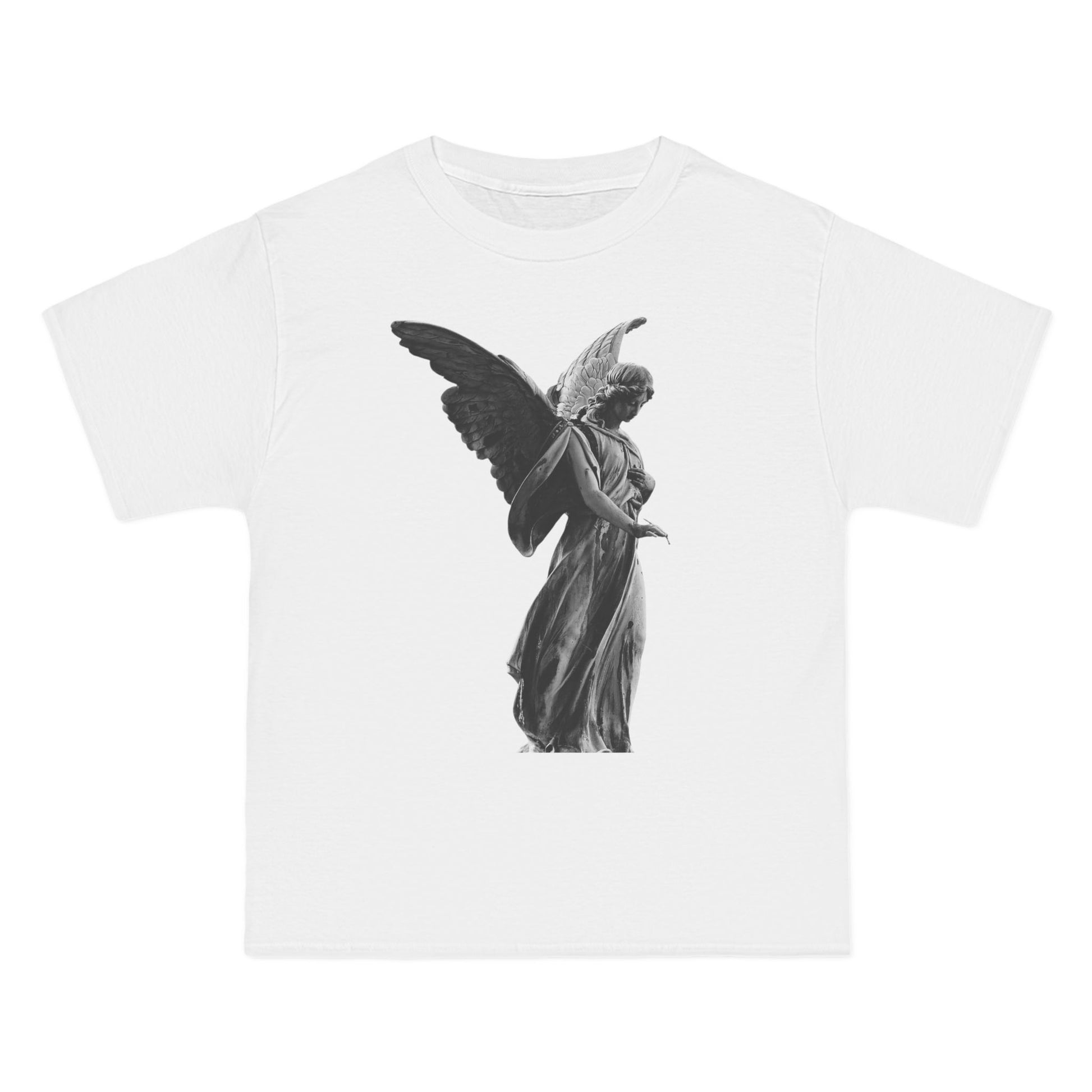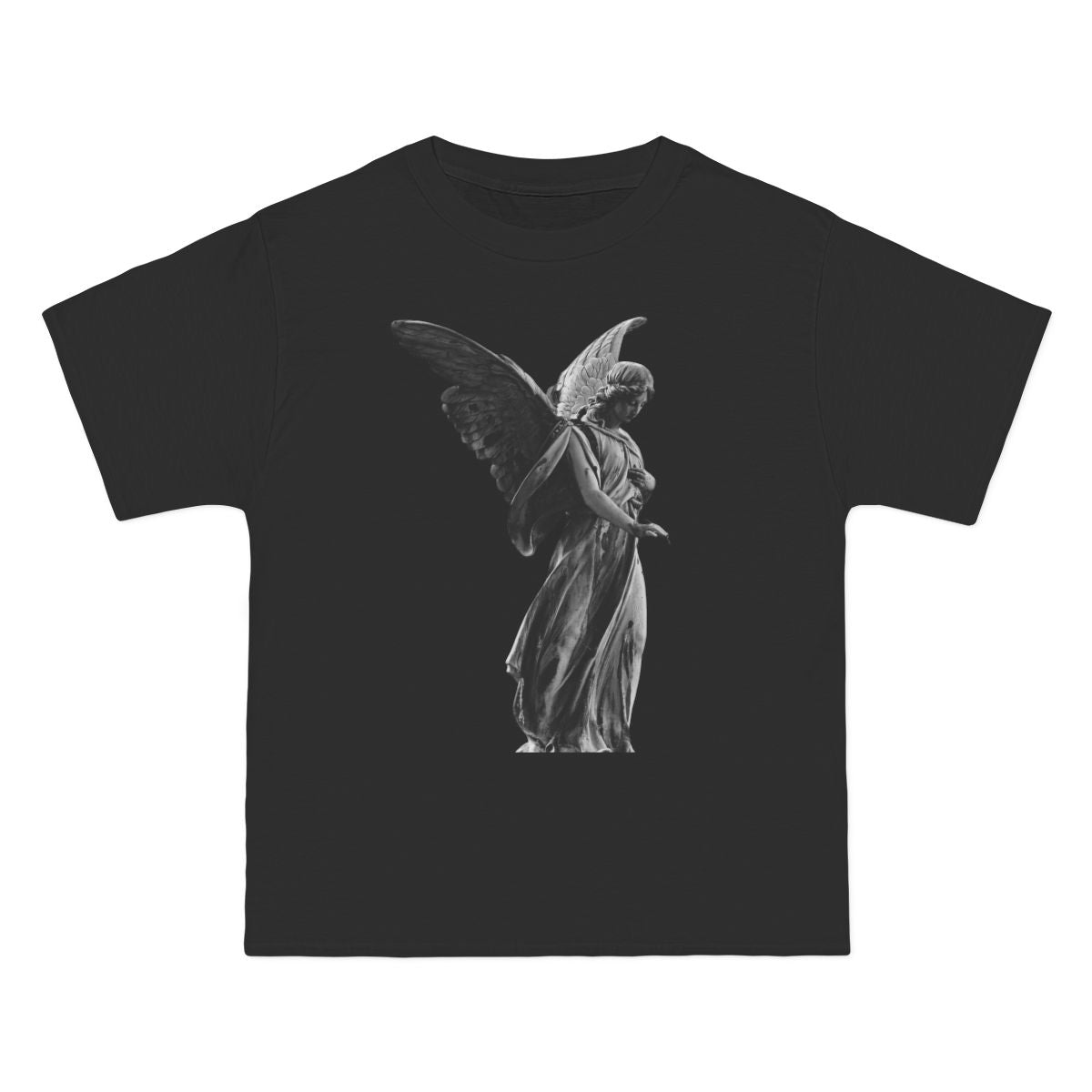 Black-and-white angel statue graphic. Clean and quiet, but heavy in presence. Midweight tee with a smooth feel and classic fit — easy to throw on with anything.